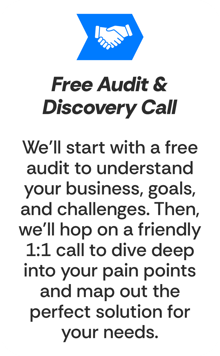 Investment varies depending on your needs, but consider it an investment in your business’s growth. The best part? You’ll start seeing results that more than pay for themselves. Grab your free call so we can start checking your brand pain points and find the perfect package for you!