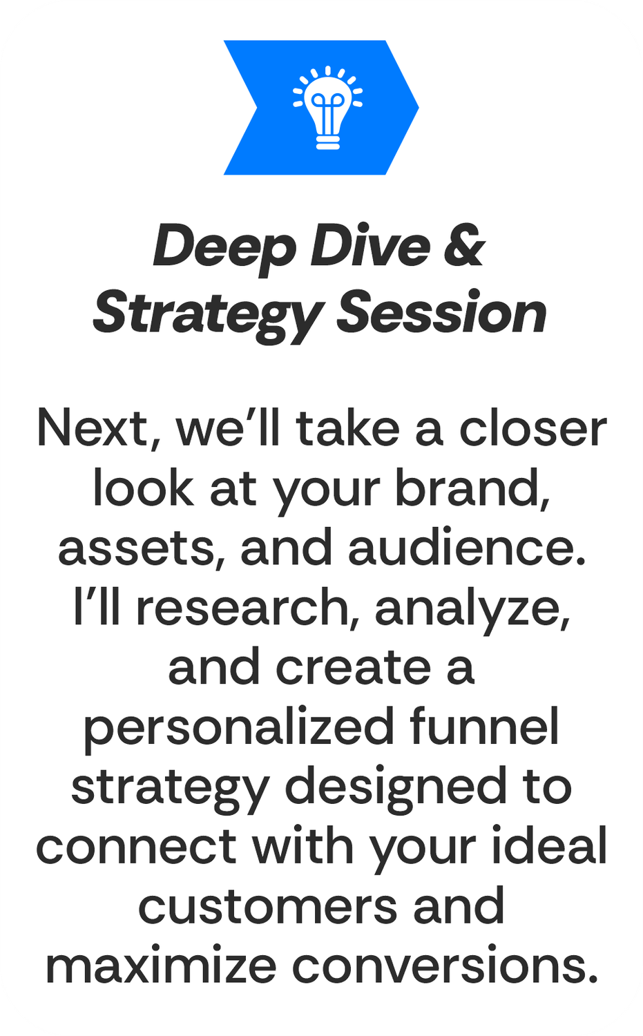 Funnel Strategy Session: A 90-minute deep dive into your business goals, audience, and funnel needs.