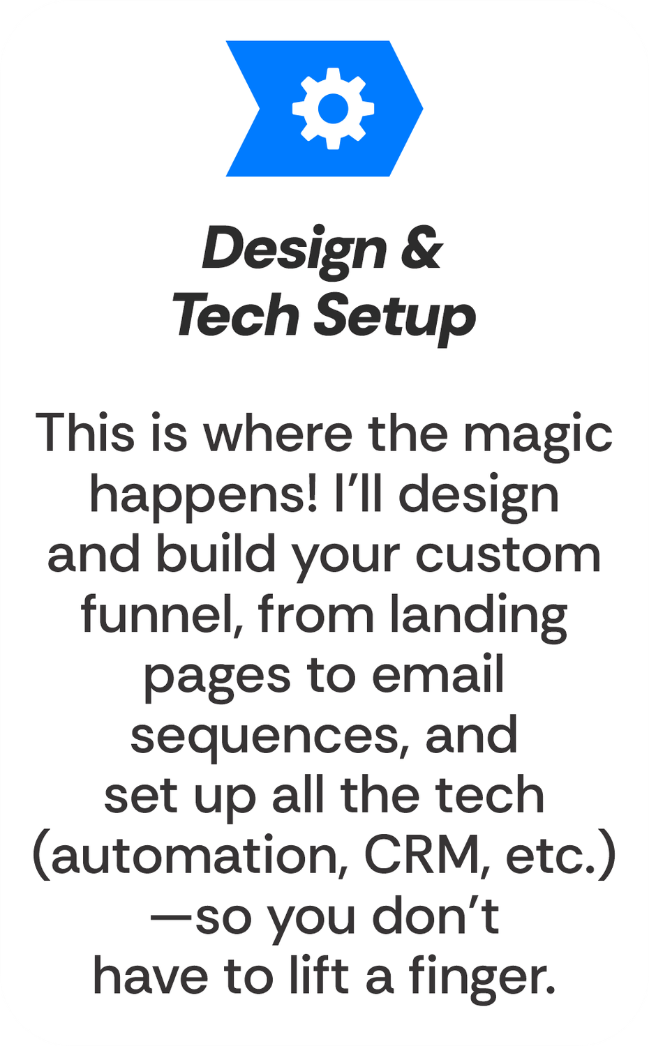 Tech Integration & Automation: Seamless setup of your funnel tech (e.g., email marketing, CRM).