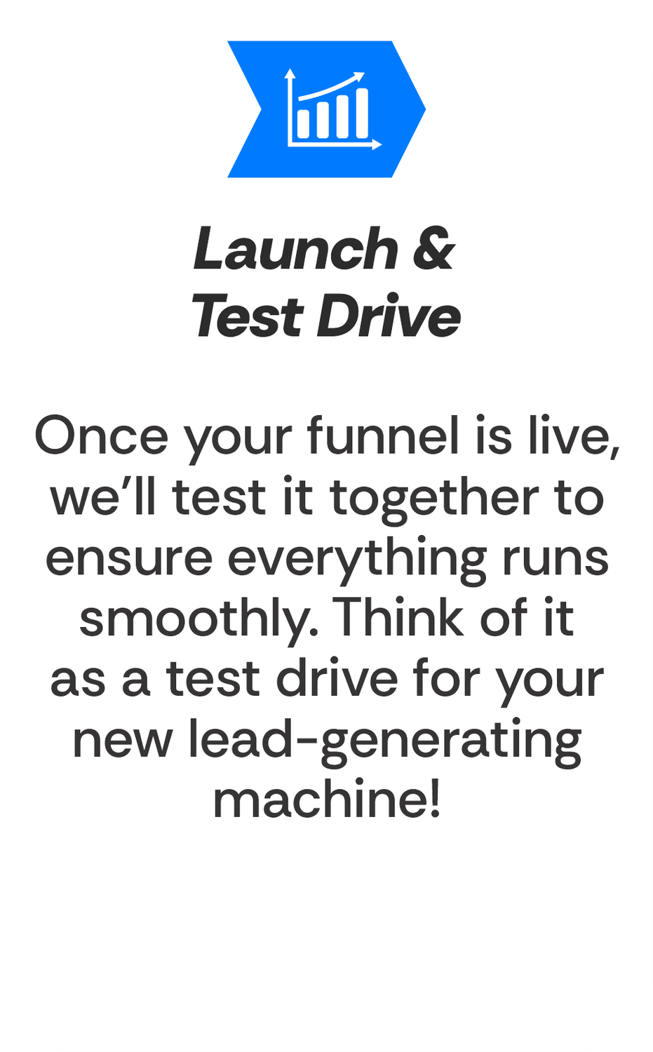 No templates, no cookie-cutter designs. Your funnel will reflect your brand’s personality, voice, and goals—so you stand out in a sea of sameness.